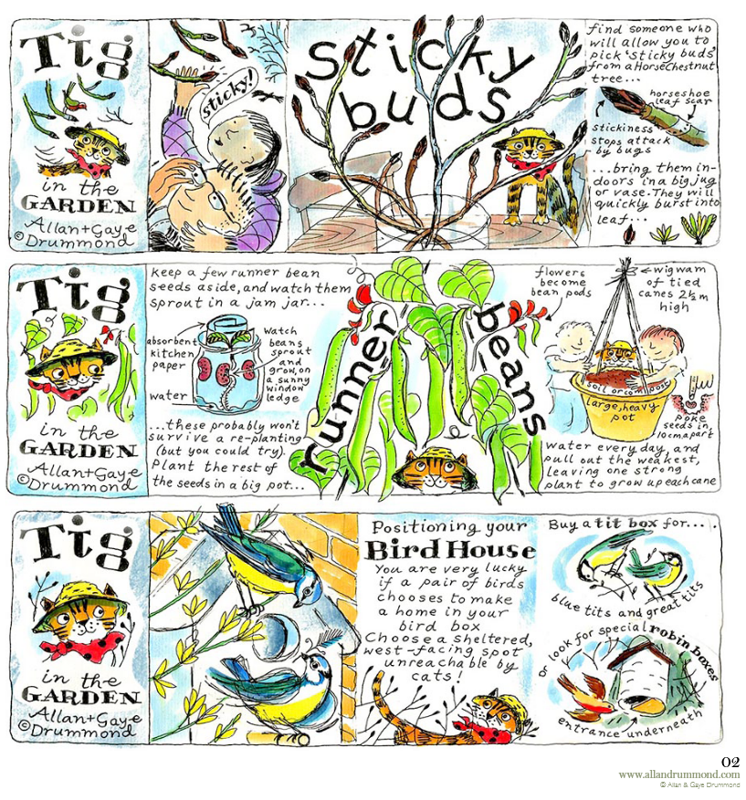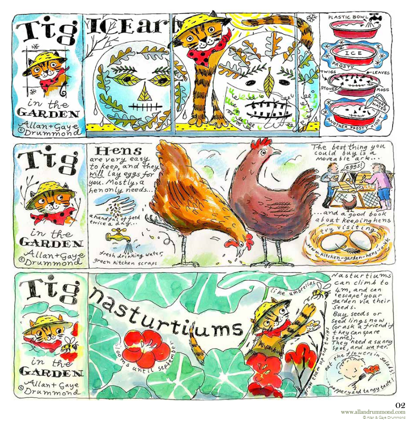 Some years ago, Allan and Gaye created a weekly children’s gardening column Tig in the Garden for the Daily Telegraph (UK) from which this concept has grown. More recently Allan and his illustration students at Cambridge School of Art have cultivated a working relationship with the education team at Cambridge University Botanic Garden (UK) developing fun activates for visitors.